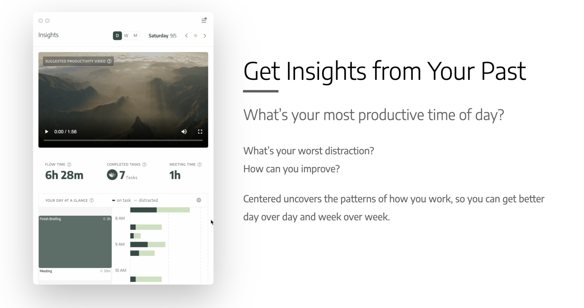 To achieve this, Centered integrates task management features with mindfulness at every step: